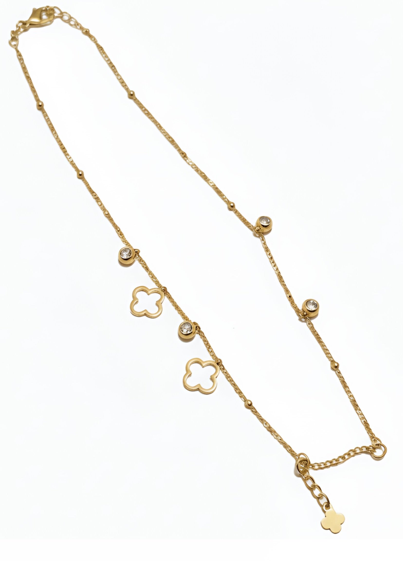 Its featuring a several charms spaced out along the chain. It minimalist yet elegant look, often associated with a "good luck".